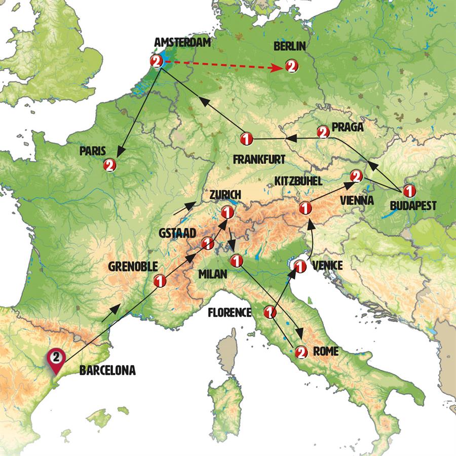 Note: If there are few travelers, we may take a train from Venice to Innsbruck.