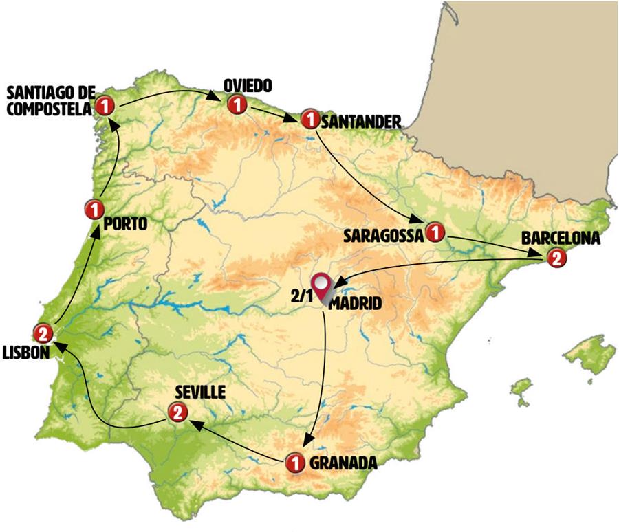 Note: Depending on the number of passengers, the journey from Valencia to Madrid might be carried out by high-speed train.