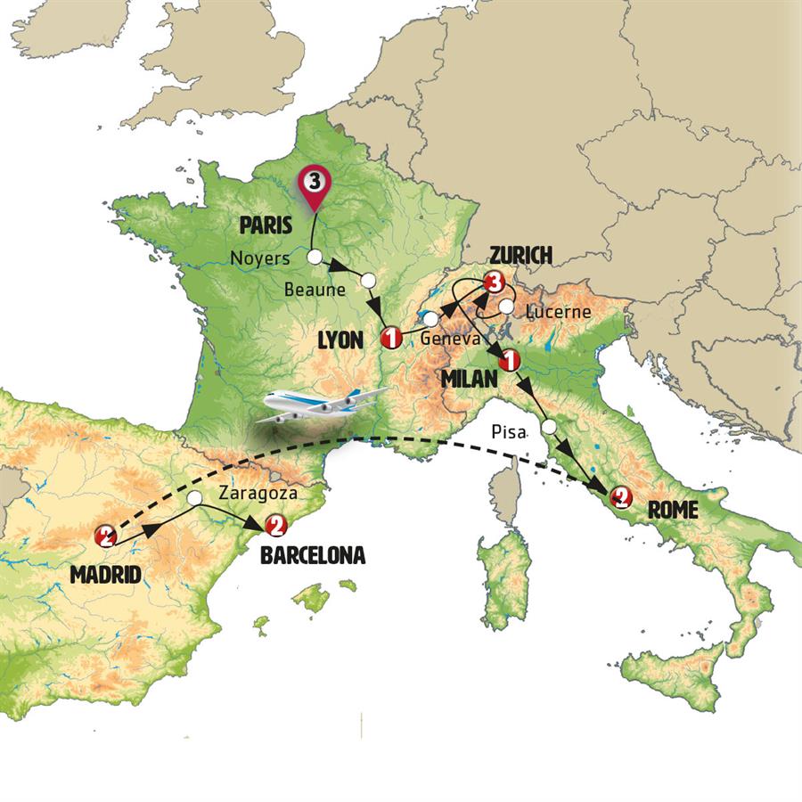 Note: Depending on the number of passengers traveling from Geneva to Zurich, this part of the trip may be done by train, in which case there will be no stop in Neuchâtel.