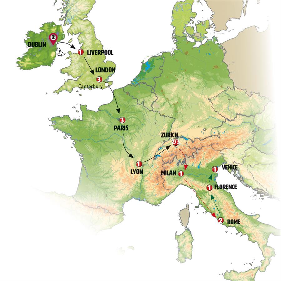 Welcome to your tour with Europamundo! We’ll transfer you to the hotel and you’ll have some free time. In the afternoon, you’ll find information about the start of your tour on the boards located at the hotel reception.