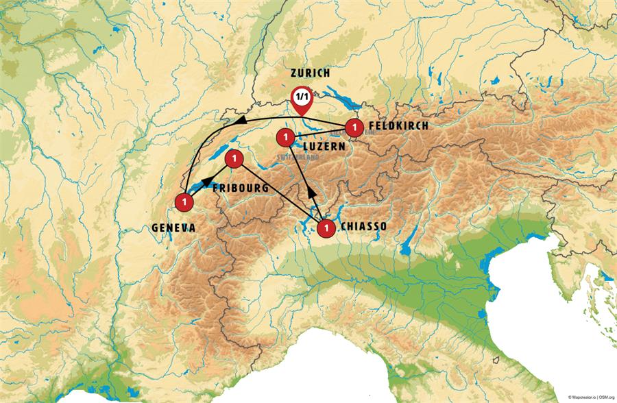 We’ll depart for St. Gallen, whose historic center has been declared a UNESCO World Heritage Site. We’ll include admission to the library of its magnificent abbey, featuring a baroque hall that houses 170,000 volumes and the Egyptian mummy of Schepenese. The library is also UNESCO World Heritage Site. Afterward, we’ll continue our journey along the shores of Lake Constance, situated between Germany and Switzerland, until we reach Constance, a German city with a beautiful medieval old town known for its cathedral and the Market Square. You’ll have time to stroll and enjoy lunch. We’ll then return to Switzerland to visit Stein am Rhein, a charming village on the banks of the Rhine, famous for its beautifully painted houses. We’ll also visit the Rhine Falls (tickets included), the most powerful waterfalls in Europe. We recommend an optional boat ride that will make you feel like you can almost touch the cascading waters. Arrival in Zurich will be in the evening.