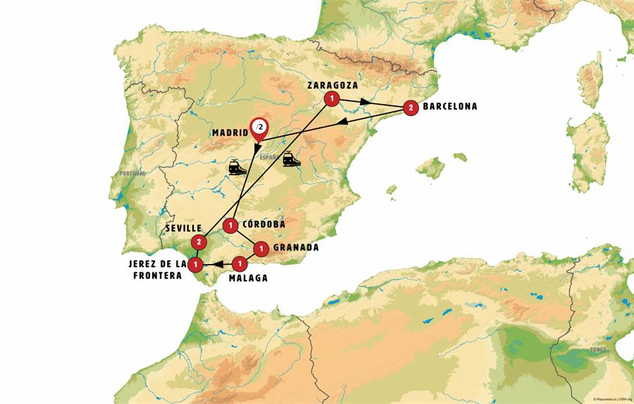 Note: Depending on the number of passengers, the journey from Valencia to Madrid might be carried out by high-speed train.