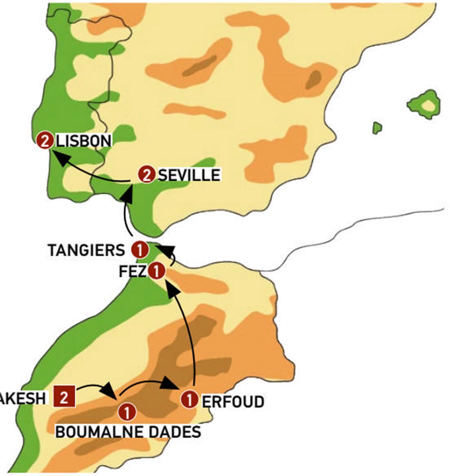 Free time in Tangier – do you feel like doing some last-minute shopping? We’ll take a ferry back to Spain. The bus will not be on board, so each passenger must take their luggage on the ferry. We’ll arrive in Algeciras or Tarifa and continue to Seville. We´ll arrive in the evening and dinner will be included.