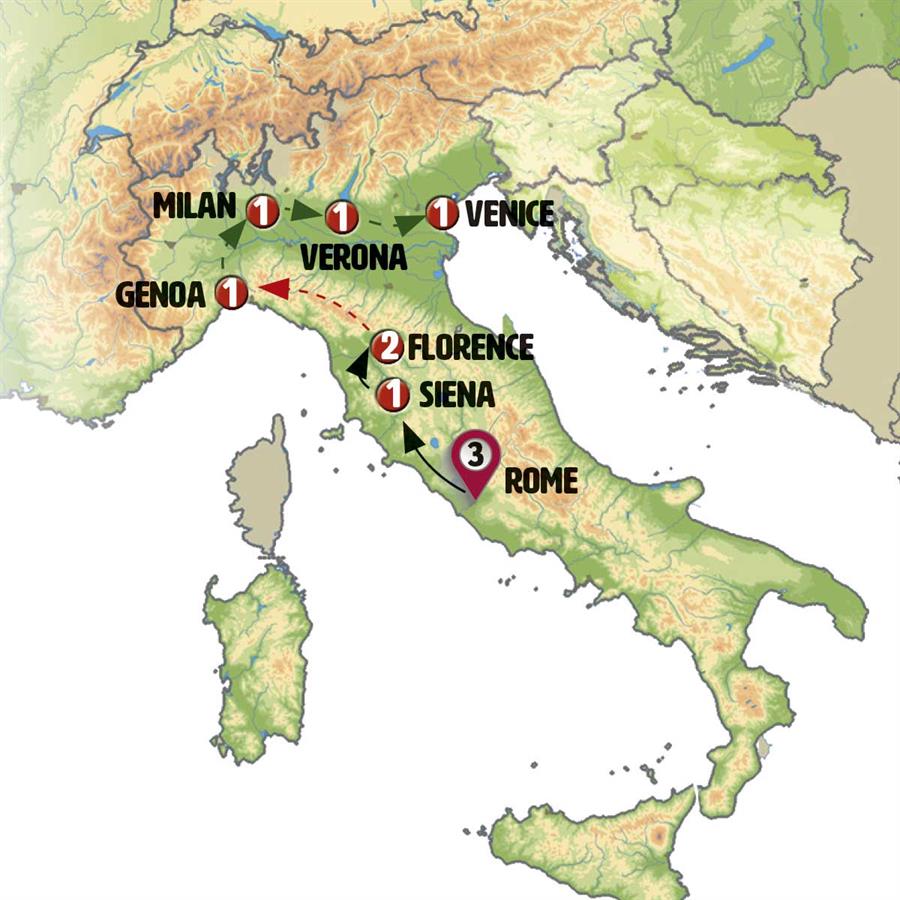 Note: The trip between Florence and Rome might be done by train in winter.