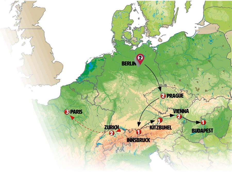 We´ll depart early and head to Bavaria, GERMANY. We’ll arrive in MUNICH by midday, where you´ll have free time to stroll through the historic city center and enjoy lunch. In the afternoon, we’ll continue to AUSTRIA. Upon arrival in the heart of the Alps, you´ll have time to explore INNSBRUCK, the capital of Tyrol. There will be time for dinner in the Golden Roof area and Old Town.
