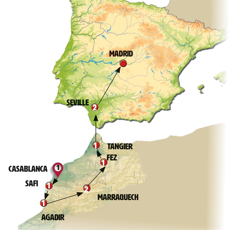 Free time in Tangier – do you feel like doing some last-minute shopping? We’ll take a ferry back to Spain. The bus will not be on board, so each passenger must take their luggage on the ferry. We’ll arrive in Algeciras or Tarifa and continue to Seville. We´ll arrive in the evening and dinner will be included.