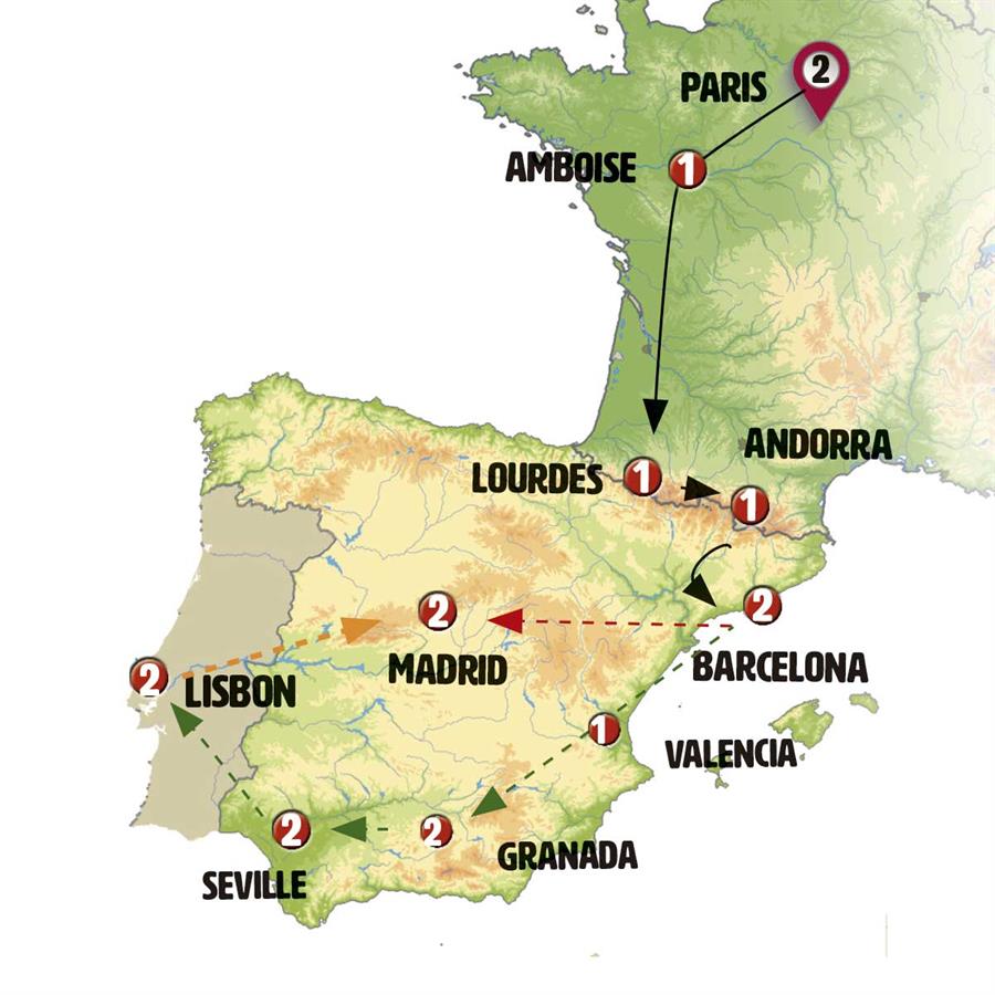 We’ll have free time in ANDORRA for shopping or a walk. After lunch, we’ll continue our journey to CATALONIA. The mountain countryside will lead us to the impressive abbey of Santa Maria de Montserrat, where we’ll take a rack train up the mountain (included) to enjoy its fantastic scenery. There you´ll have time to explore the sanctuary (entrance not included), we’ll continue to BARCELONA, arriving in the late afternoon.
