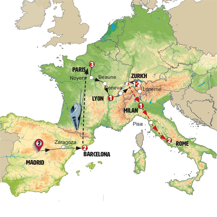 Note: Depending on the number of passengers traveling from Geneva to Zurich, this part of the trip may be done by train, in which case there will be no stop in Neuchâtel.