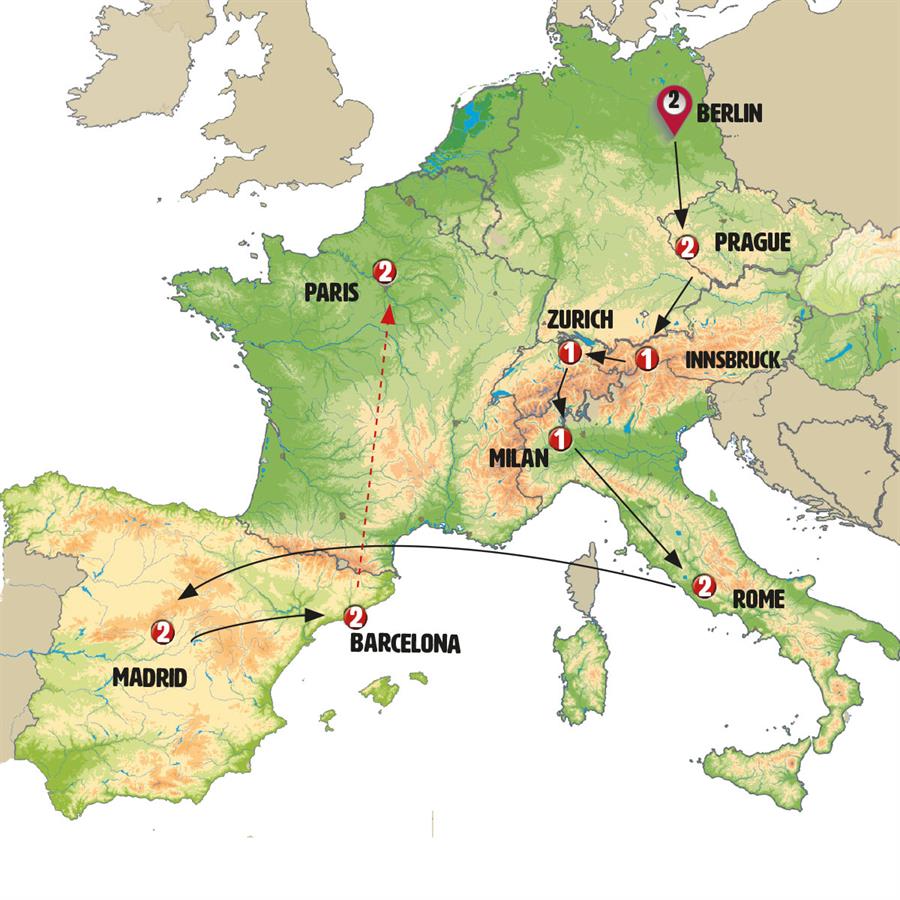 Welcome to your tour with Europamundo! We’ll transfer you to the hotel and you’ll have some free time. In the afternoon, you’ll find information about the start of your tour on the boards located at the hotel reception.