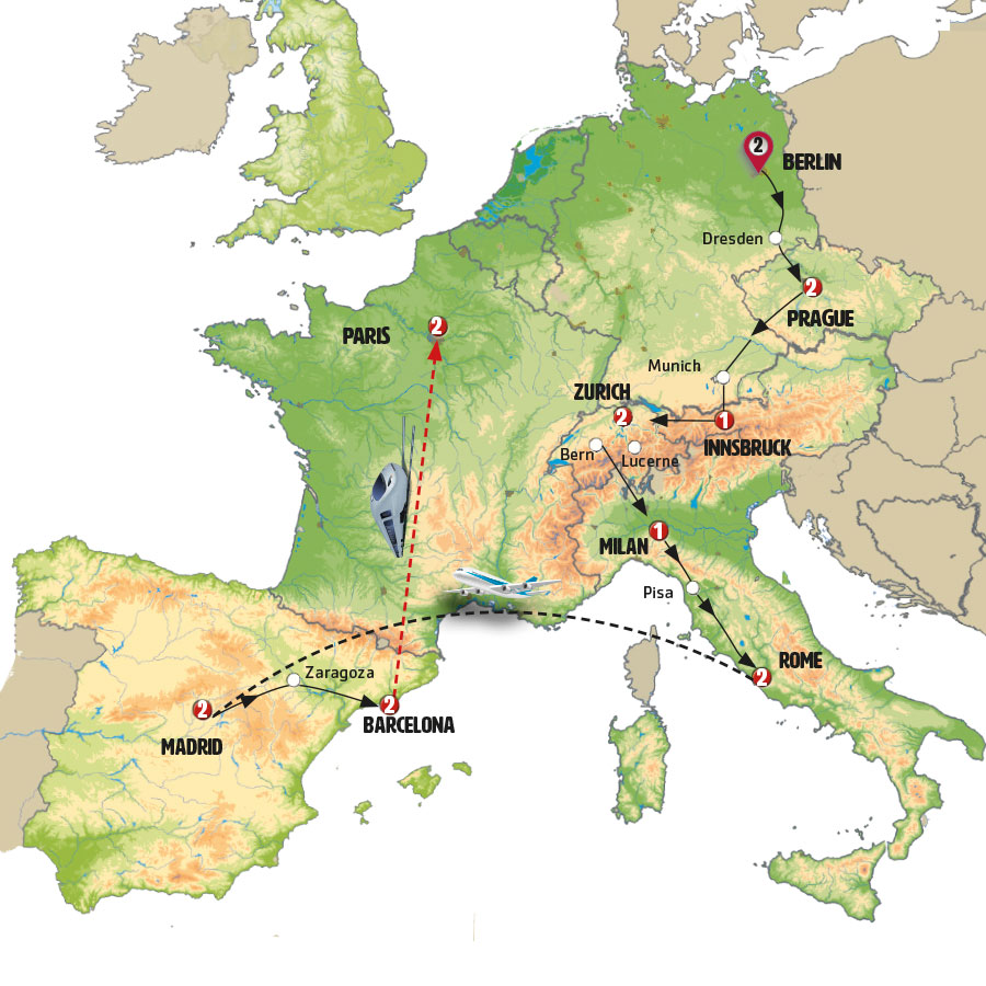 Note: The train journey will be without an Europamundo guide.