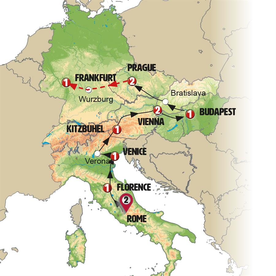 Note: If there are few travelers, we may take a train from Venice to Innsbruck.