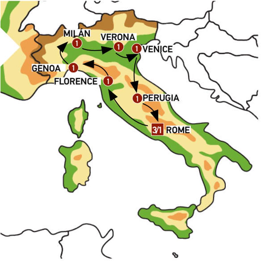 Today we will leave ROME and head north, enjoying the beautiful landscapes along the way. We will arrive in FLORENCE, where we will go directly to the Michelangelo Viewpoint, which offers an impressive panoramic view of the city. Afterward, we will walk to the historic city center, where, after some free time for lunch, we will take a guided walking tour with a local guide of Tuscany’s capital—one of the most visited cities in the country, considered the birthplace of the Renaissance and home to some of the most influential artists and thinkers in history, such as Leonardo da Vinci, Michelangelo, Botticelli, and Raphael.Highlights include the Gothic cathedral (the Duomo), the ancient stone bridge Ponte Vecchio with its traditional goldsmith shops, and Piazza della Signoria—the political heart of the city, featuring the medieval town hall.