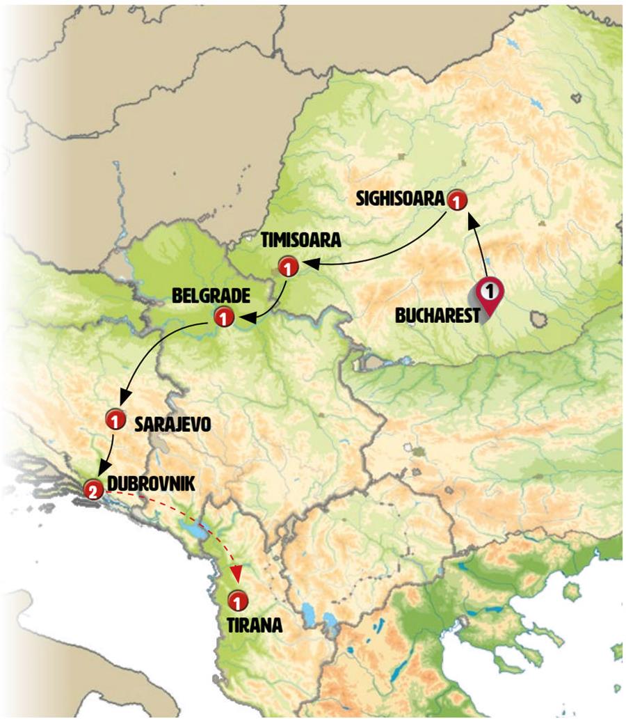 We’ll set off early for Montenegro. After completing border procedures, we’ll enjoy the stunning coastal scenery and the Bay of Kotor. We’ll take a ferry across the bay to Kotor, where you’ll have time to explore this beautiful walled town with its strong Venetian influence. Next, we’ll stop in Budva, a charming walled village surrounded by the sea, for lunch. Then we’ll travel to Albania. After customs procedures, we’ll go to the capital, Tirana, where you’ll have some free time to explore. Dinner will be included.