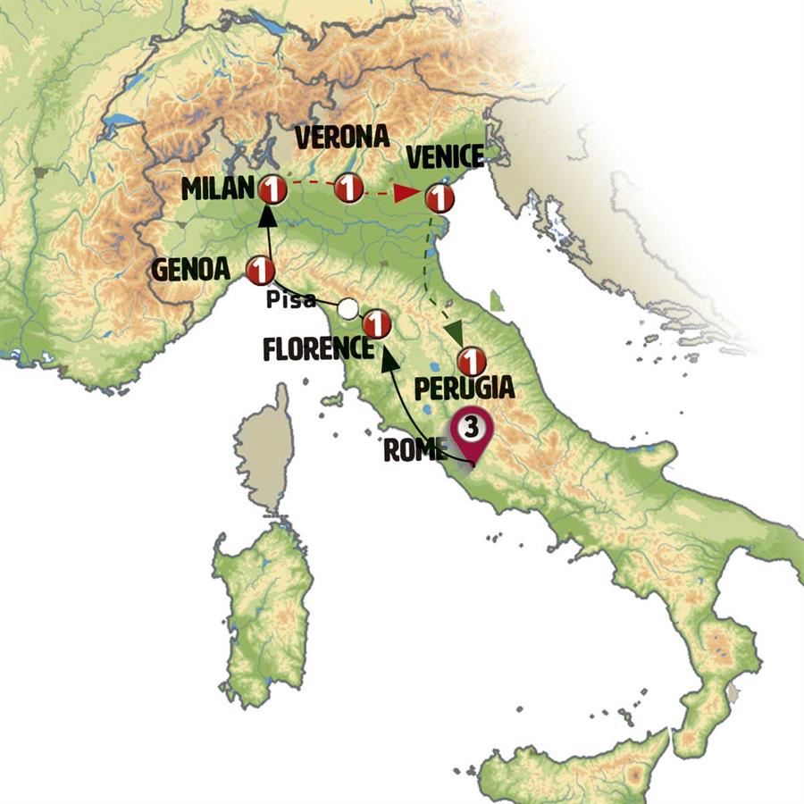We’ll have time to explore Verona, the enchanting city of Romeo and Juliet, before departing for Venice, arriving around 01:00 p.m. A delightful boat trip to St. Mark’s Square is included, followed by a guided walking tour of the City of Canals, including a visit to see Murano glasswork. Afterwards, enjoy some leisure time—perhaps a gondola ride? Accommodation will be in the Mestre district.