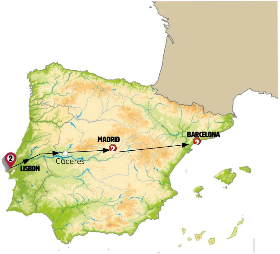 We’ll depart from Portugal early, crossing the picturesque region of Alentejo. We’ll stop for a coffee in Estremoz, a charming town with a medieval castle, cobblestone streets, beautiful architecture, and a peaceful atmosphere that embody the Portuguese identity. Continuing our journey towards Spain, we’ll arrive in Cáceres, where you can enjoy lunch and a stroll through its historic center—an exceptionally well-preserved medieval and Renaissance urban complex. Finally, we’ll proceed to Madrid, arriving in the evening with a transfer to Plaza Mayor, bustling with restaurants and vibrant life.
