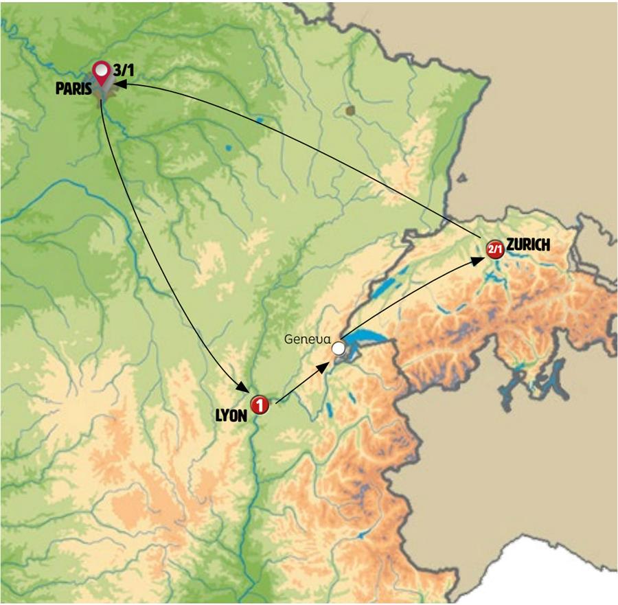 Note: Depending on the number of passengers traveling from Geneva to Zurich, this part of the trip may be done by train, in which case there will be no stop in Neuchâtel.