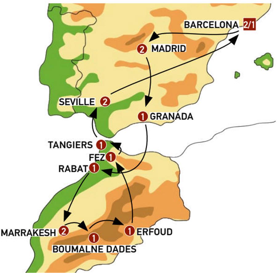 Free time in Tangier – do you feel like doing some last-minute shopping? We’ll take a ferry back to Spain. The bus will not be on board, so each passenger must take their luggage on the ferry. We’ll arrive in Algeciras or Tarifa and continue to Seville. We´ll arrive in the evening and dinner will be included.