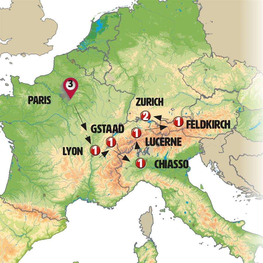We’ll depart, skirting the shores of the Lake of the Four Cantons as we head toward Einsiedeln, renowned for its immense baroque abbey, the most important pilgrimage center in Switzerland. Continuing east, we’ll visit Heididorf, where we’ll see Heidi’s House (admission not included), a picturesque site with stunning landscapes accessible via a pedestrian path. Next, we’ll enter the small independent country of Liechtenstein, and in its capital, Vaduz, nestled beneath its castle, you’ll have free time to stroll and enjoy lunch. Afterwards, we’ll proceed to the neighboring city of Feldkirch in Austria, a charming walled city near the borders of Switzerland, Liechtenstein, and Germany, with a beautiful medieval quarter and castle. Free time.