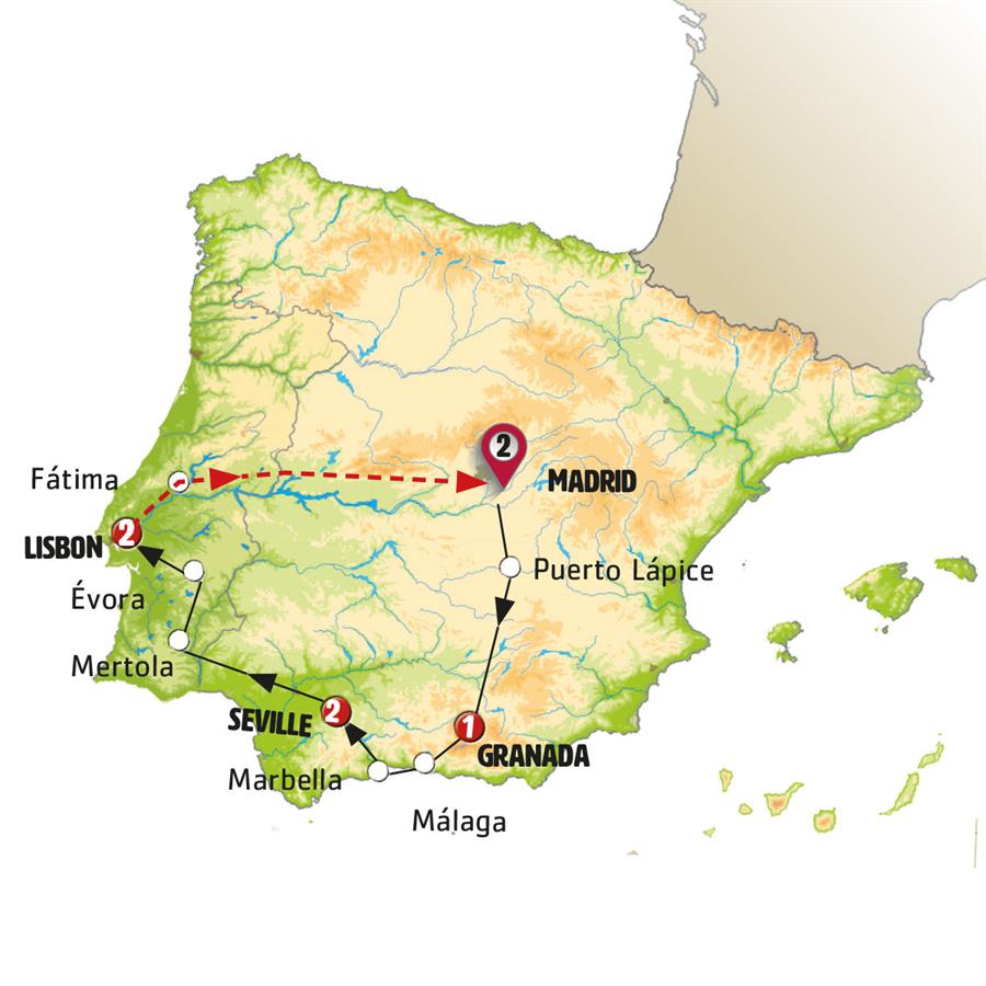 We’ll leave Seville, traveling through pleasant landscapes of rolling hills and expansive pasturelands as we head towards Extremadura. In Mérida, admission is included to the Archaeological Ensemble of Mérida, which features a Roman Theater and Amphitheater. This site is renowned for its excellent preservation and its designation as a World Heritage Site. You´ll have time for lunch and a stroll through the vibrant pedestrian historic center, filled with restaurants and local charm. We will then continue to Portugal, stopping in Évora, another World Heritage Site, known for its whitewashed streets, Renaissance palaces, and cathedral. We’ll arrive in Lisbon in the evening.